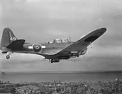 The twelve aircrews that formed the initial complement underwent dive bombing training, supervised by a USMC master sergeant.[8][9][10] A proportion of the squadron's ground crew had experience with the type; they had been loaned to the American Field Service based in the South Pacific on Espiritu Santo to assist in the maintenance and repair of American aircraft, and had trained on the Dauntless.[11]