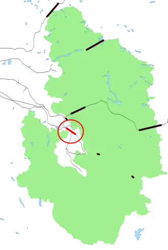 The Midland constructed a junction on its Buxton line at Peak Forest Signal Box which ran under Dove Holes in a tunnel 2,984 yards (2,729 m) long, some 183 feet (56 m) beneath the LNWR line. The entrance was at the summit of the line, nearly 1,000 feet (300 m) above sea level, and descended nearly a hundred feet at a gradient of 1 in 90.[1]