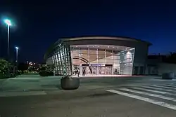 Downsview Park is a rapid transit station on Line 1 Yonge–University of the Toronto subway and a commuter rail station on the Barrie commuter rail line of GO Transit. Subway service began on December 17, 2017, and GO Train service began on December 30, 2017.[3] Downsview Park station is a fully integrated multi-modal transit facility serving both transit lines. This is in contrast to other interchanges between TTC subway and GO Transit rail lines, which have separate structures for each agency.