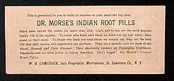 Dr. Morse's Indian Root Pills was one of the most successful and enduring products to be manufactured and marketed in North America as part of the lucrative patent medicine industry, which thrived during most of the 19th and 20th centuries. Its manufacturer claimed the pills contained herbal ingredients that would help "cleanse the blood," as "impurity of the blood" was believed to be the cause of all disease.