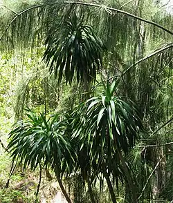 Endemic to Oʻahu, Dracaena halapepe is primarily found on the leeward slopes of the Waiʻanae Mountains, though it has also been reported in the Koʻolau range.[7][5] It inhabits dry to mesic forests at elevations between 300–850 m (980–2,790 ft), preferring areas with moderate rainfall, full sun, and well-drained rocky or cinder soils.[7][4] This species typically grows in open-canopy forest systems alongside native plants such as ʻōhiʻa (Metrosideros polymorpha), lama (Diospyros sandwicensis), alaheʻe (Psydrax odorata), and naio (Myoporum sandwicense).[4] Adapted to withstand drought and wind, D. halapepe is well suited to Hawaiʻi's dry forest ecosystems.[8][4] However, due to habitat degradation, invasive species, and urban encroachment, its natural populations have declined, leading to its designation as a species of conservation concern.[7][8]