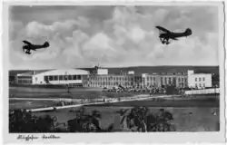 The airport was opened to commercial traffic on 11 July 1935.[4] Though planned as a commercial airport, its importance to the military increased dramatically during the Third Reich. During World War II it was exclusively used for military purposes. An airlift between the airport and Breslau (modern day Wrocław) was established to support German troops during the Siege of Breslau in the spring of 1945. Attempts to destroy buildings and equipment before Allied troops could occupy Dresden failed due to the resistance of civil airport employees.