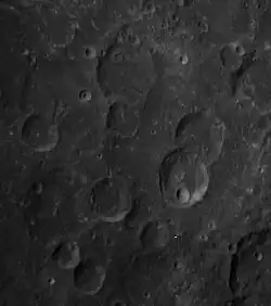![]() Lunar Orbiter 4 image of the crater, on top right is Dreyer C, on the bottom right are Dreyer K and J and on top left is Dreyer W | |