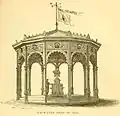 Under a 13-sided gazebo at the 1876 Centennial Exposition.