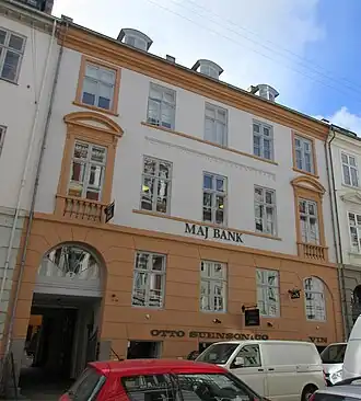 Dronningens Tværgade 7 is today owned by Keudan. Maj Bank is based in the building. Otto Suenson still operates a wine shop in the basement.