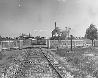 The ICI Osborne railway line was constructed for the ICI Osborne works (later owned by Penrice Soda Products) in the 1940's. The line branched off southerly near Hamilton Avenue, Osborne to the plant. This line was extended at some point in the 1950's or 60's South-ward to join the main line again near Seaborne Road.[1] The line had industrial passenger service until 1980. The line was closed in 2014 following the cessation of the Penrice Stone Train from the Barossa Valley.[2]