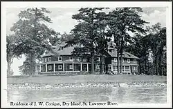 James W. Corrigan inherited Dry Island when his father died.[17] He added a semi-circular addition to the west side of the house in 1912.[14][15] He converted the fireplace in the former main foyer into a back-to-back fireplace that served both areas.[15] A spacious verandah surrounded the new addition.[15] He allowed the Canadian government to use the house there as a convalescent hospital during World War I.[29] He attempted to sell the island in 1920,[30] but was unsuccessful.