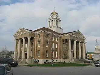 Dubois County Courthouse is a historic courthouse located at Jasper, Dubois County, Indiana. It was designed by the architectural firm Milburn & Heister and built between 1909 and 1911. It is a three-story, Classical Revival style reinforced concrete and masonry building. It features a cupola that rises 100 feet high and pedimented porticos with Ionic order columns. Also on the property is the contributing Soldiers and Sailors Monument erected in 1894.[2]: 5, 9