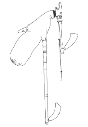 There is considerable variation in physical appearance of the duda in Hungary, but the most common form has a chanter stock in the form of an animal’s head (usually that of a goat-like animal) and a cow horn bell on both the kontra and the drone. Historically the bag was often made from dog skin (leading to a popular song that stated that prospective bagpipers needed to “go to hell because that’s where the big dogs are from which good bagpipes can be made”), but today goat skin is a much more common material.