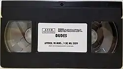 In October 1987, Heron Communications filed a lawsuit against the Vista Organization regarding home video rights to Dudes and nine other Vista-produced films, claiming that Vista was attempting to renege on its commitment to license home video distribution of its films to Heron due to a possible merger with Carolco Pictures.[2] Vista claimed that it had no such arrangement with Heron.[2] Dudes was eventually released to home video in VHS format in 1991 by Avid Home Entertainment, a division of Artisan Entertainment.[13] It was on VHS that, like The Decline of Western Civilization, Suburbia, and The Boys Next Door, Dudes found a niche audience in subsequent decades.[8]