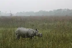 In 1984-85, Indian rhinoceros was reintroduced into Dudhwa National Park from Assam and Nepal.[8] In 2024, there were 46 rhinos in the park.[9]