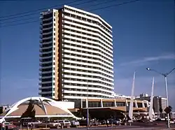 Groundbreaking for the tower eventually took place on October 20, 1962.[220][200] It was designed by Milton Schwartz,[221][70] and the opening was pushed back because of design changes.[222] The tower eventually opened in May 1965.[72] It had 510 rooms,[223][224][204] bringing the total room count to 960.[200] At 21 stories,[70][71] it was among the tallest buildings in Nevada.[71]