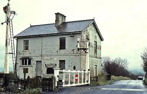 The signal box at Dunloy was destroyed in 1921 and again in 1957 during periods of civil disturbance.[2]