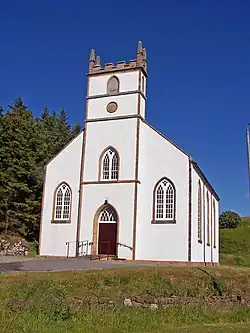 Dunvegan Parish Church, also known as Duirinish Parish Church, is located in Dunvegan. It is a Gothic Revival rectangular church with a battlemented tower, which belongs to the Church of Scotland. The church was built between 1823 and 1832 and is now a Category A listed building.[6] Its Historic Environment Scotland listing refers to "a good set [of] sabre legged Elders' chairs".[6]