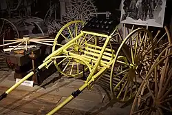 - ^ The seat with attached footrest was supported above the axle by long cantilevers. The cantilevers which freely pivoted on their fulcrum were supported by leaf springs fixed to the shafts.