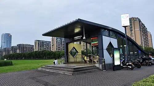 Dushuhu Neighborhood Center Station (Chinese: 独墅湖邻里中心) is a station on Line 2 of the Suzhou Metro located in Gusu District of Suzhou.[1] It started operation on September 24, 2016, with the opening of the Baodaiqiao South - Sangtiandao extension on Line 2.[2]
