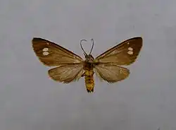 Dysauxes ancilla, the handmaid, is a moth of the family Erebidae. The species was first described by Carl Linnaeus in his 1767 12th edition of Systema Naturae. It lives in southern and central Europe, through Turkey and Armenia, over the Ural Mountains and up to the Caucasus.