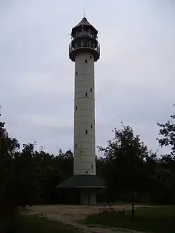 An observation tower, with a height of 40 metres (130 ft), was built at the summit of the hill in 2005. This is used for forest fire observation, and is also open to the public at certain times, offering wide views of the surrounding countryside and the city of Poznań.