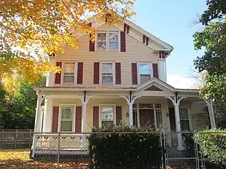 The house was built in the 1870s for Edwin B. Cummings, co-owner of a hardware store on Main Street. The neighborhood had been a desirable location for the city's business elite since the 1850s, and the neighbors were either prominent local businessmen or agents for the city's mills. The other houses at the corner, while of greater size and originally more stylish, have had their historic integrity compromised by the application of synthetic siding.[2]