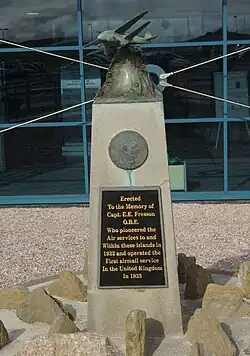 In 2011, a bronze statue of Fresson was unveiled at Sumburgh Airport.[14] A memorial to him stands in front of Kirkwall Airport.[15]