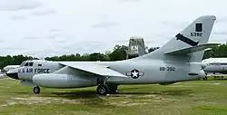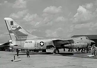 While the supercarrier project did not proceed,[5] flight testing of the A-3 validated its performance. It was recognized that the type was capable of carrying out mission profiles practically identical to that of the much larger Boeing B-47 Stratojet, operated by the USAF. This included an unrefuelled combat radius of almost 1,000 miles. This performance, coupled with the fact of development costs having already been paid by the Navy, as well as pressing needs highlighted by the Korean War, made the A-3 attractive to the USAF.[3] Consequently, during the early 1950s, the USAF began to express interest in procuring a land-based variant.[3]