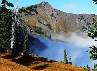 Eagle Point is a 6,247-foot-elevation (1,904-meter) summit in the Olympic Mountains and is located in Clallam County of Washington state.[3] It is set on Hurricane Ridge within Olympic National Park. It is situated midway between Steeple Rock and Obstruction Peak, 1.42 mi (2.29 km) to the southeast. Precipitation runoff drains into tributaries of the Elwha River and Morse Creek, thence the Strait of Juan de Fuca.