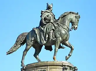 Just inside the northwest edge of Eakins Oval, in front of the Philadelphia Museum of Art stairs, stands the Washington Monument fountain. It was commissioned and designed by sculptor Rudolf Siemering. The sculpture was dedicated in 1897 at the Green Street entrance to Fairmount Park.