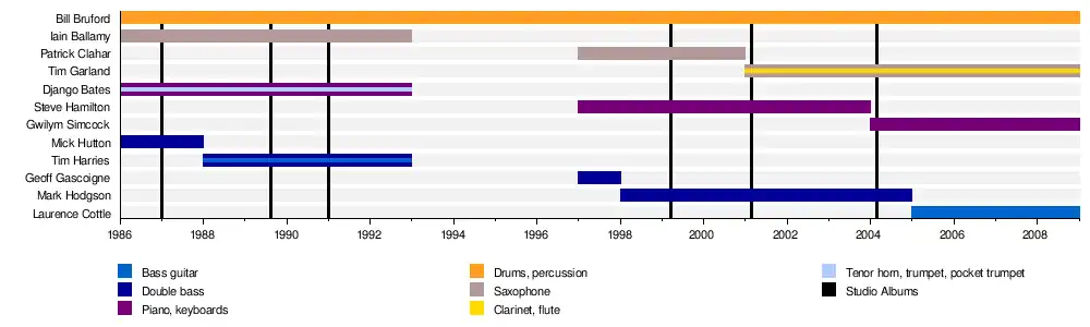 - Bill Bruford - acoustic and electronic drums, percussion (1986–2008)