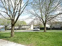 The buildings are concrete prefabrications said to be built for the 1958 British Empire and Commonwealth Games[11] and later used for the R.A.F. families. Due to their similar design and the way the buildings lock together like blocks, the estate was also nicknamed "Legoland". It also has the nickname Explorers Estate as each of the streets, Scott Close, Shackleton Close, Livingston Way, Drake Close, Clive Road and Mallory Close were named after discoverers, Flemingston Road being a pre-existing road.