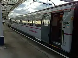 East Coast was a subsidiary of Directly Operated Railways, formed by the Department for Transport as an operator of last resort when National Express refused to provide further financial support to its National Express East Coast (NXEC) subsidiary and consequently lost its franchise.[3] The franchise was re-nationalised on 14 November 2009, with the day-to-day operations continuing normally on the whole. Within one year, East Coast's rolling stock begun to be re-liveried in a new silver scheme intentionally styled so that future operators of the franchise could easily apply their own branding following their takeover of operations. During May 2011, East Coast launched the "Eureka" programme, which involved numerous service changes, including an overhauled timetable and complimentary catering for First Class passengers. On the whole, service levels remained relatively steady and unchanged throughout East Coast's tenure.