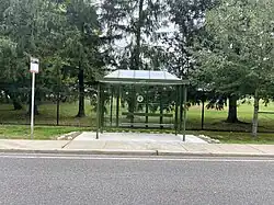A bus stop for the n27 on Harbor Hill Road in 2021.