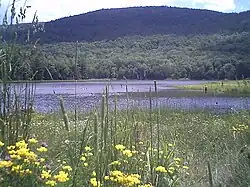 The East Kill's 36.25-square-mile (93.9 km2) watershed, is mostly located within the town of Jewett, with a few small sections entering into the towns of Windham, Ashland, and Lexington.[2] East Kill drains some of the highest slopes in the Catskills, including the Blackhead Mountains. The Blackhead Mountain range includes Thomas Cole Mountain, Black Dome, and Blackhead Mountain, the fourth-, third-, and fifth-highest peaks in the Catskills, respectively. The highest point in the East Kill watershed is 3,948 feet (1,203 m) at the summit of Black Dome Mountain in southeast Jewett. The average elevation of the watershed is approximately 2,674 feet (815 m).[2]