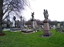 The cemetery was founded in 1871 and laid out in 1872 to meet the increasing demand from the eastern suburbs of London. The first interment was in August 1872 and the cemetery remains open. The cemetery covers 33 acres (0.13 km2) next to the Greenway and has two Gothic chapels built at the end of the 19th century that remain in use: a burial chapel dedicated to Church of St Michael and All Angels, and a non-denominational chapel for cremations. A total of 244 Commonwealth service casualties from World War I and 132 from World War II are buried in this cemetery, in addition to three Dutch merchant seamen from the latter war.[1]
