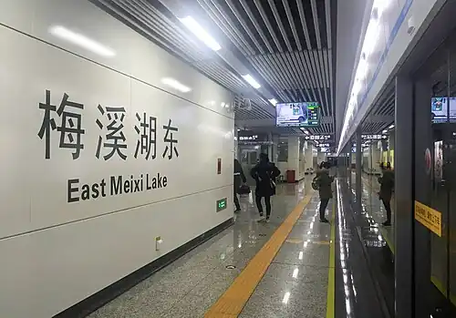 East Meixi Lake station is a subway station in Yuelu District, Changsha, Hunan, China, operated by the Changsha subway Changsha Metro. It entered revenue service on December 28, 2015.[1][2]