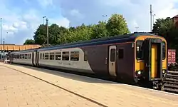 They run a mixture of Class 158s and Class 170s with 158s normally confined to the Norwich to Liverpool stretch.[33] EMR introduced Class 170s to replace the153s and 156s which have since been withdrawn,[34] and initially the 158s, which will now be kept for the foreseeable future and are planned for refurbishment along with the 170s.[35][36][37][38][39]