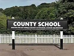 The terminus of the line was Cromer High railway station, the first station opened in Cromer, situated to the south on the outskirts of the town on a steep escarpment.[13] The station (along with the East Norfolk line) was incorporated into the Great Eastern Railway, who had operated the services from the beginning.[13] It served as the terminus of Great Eastern Railway services from London and Norwich. Initially named "Cromer" on opening, it was renamed "Cromer High" in 1948.[13]