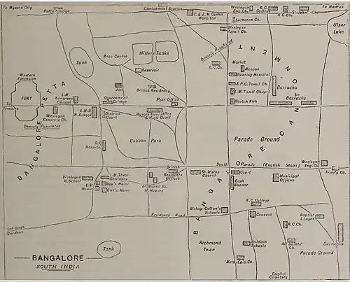 - ^ Slater, T E (September 1898). "Our Missionary Districts: Bangalore". The Chronicle of the London Missionary Society (81): 214–216. Retrieved 23 October 2015.