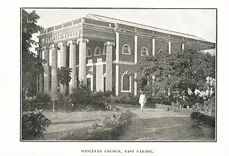 The Wesleyan Tamil Mission in the Bangalore Cantonment was established in 1821.[5][6] In November 1821, Elijah Hoole of the Wesleyan Mission applied to the Government of Madras for granting permission for starting a school and preaching place for the native population in the Bangalore Cantonment. The land selected had been previously obtained for the same purpose by a member of the Wesleyan Society who had lived temporarily in the Bangalore Cantonment, and had built a mud building with a thatched roof, which was in ruins in 1821. The permission was granted and a small building measuring 30 ft. length and 13 ft. width was constructed under the supervision of Mr. Mowat.[7]