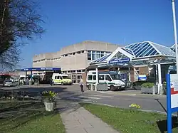 The hospital, which was built in the mid-1970s by local building contractor Walter Llewellyn & Sons Ltd,[1] was officially opened by Princess Alexandra in 1977.[2] It was expanded in 1989 under a scheme which allowed the old Victorian St Mary's Hospital to close and be demolished in 1990.[3] In 2015 the hospital confirmed that it had sent off a sample, taken from a patient with a history of travel in West Africa, for precautionary ebola testing at Public Health England.[4]