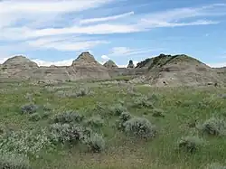 Though the prairie landscape of eastern Montana has traditionally been considered a part of the Great Plains, a recent (early 2010s) study has shown that, at least in some ways, the biomes of Eastern Montana have more in common and share more species with the Intermountain West scrub steppes and the Palouse of Eastern Washington than they have with the neighboring plains of The Dakotas.[5] Some parts of eastern Montana, in areas most prone to drying chinooks, have near-desert conditions and scrub rather than grassland.[6] Eastern Montana also has breaks and highlands that are widely forested, such as the Custer National Forest and areas around Fort Peck Lake, in contrast to the almost completely treeless plains of the Midwest.