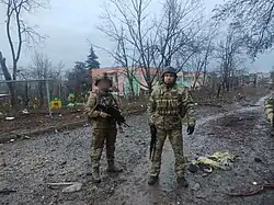 On 2 March, Russian paratroopers landed in Kharkiv during the early morning and started clashing with Ukrainian forces. Clashes also took place near a military hospital of the city as Russian paratroopers descended on it. Kharkiv Oblast's Police Chief Volodymyr Tymoshko later stated that the situation was under control.[36] Russian forces entered the town of Balakliia the same day.[37][38]