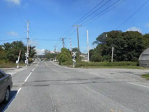 The former Eastport LIRR station site on the northwest corner of this grade crossing. | ||||||||||||||||