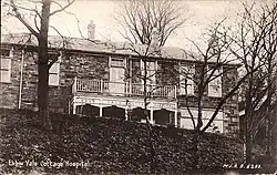 The hospital was established by the conversion of two houses (one belonging to the Ebbw Vale Steelworks manager and one belonging to the Steelworks surgeon) in 1900.[1][2] It joined the National Health Service in 1948[1] and, following the successful development of community-based health services, closed as a public sector healthcare institution in 2005.[3] It briefly reopened as a private hospital in April 2008, but after Ysbyty Aneurin Bevan became the main provider of healthcare in the area in October 2010,[4] the hospital got into financial difficulties and ceased trading in May 2012.[5]