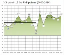93. ^ "Philippines: Economic growth". TheGlobalEconomy.com. 2017. Retrieved November 29, 2017.