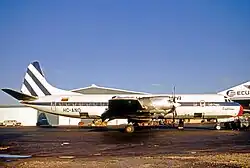 Empresa Ecuatoriana de Aviación, more commonly known as simply Ecuatoriana, was the national airline of Ecuador.[1] The carrier had an operational hiatus between September 1993[1] and August 1995, resuming operations on 23 June 1996, after VASP became the controlling shareholder. The airline folded permanently in 2006.