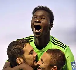 Oshodi celebrating a goal for Forest Green Rovers in 2012