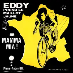 Eddy Prend Le Maillot Jaune (Eddy Takes the Yellow Jersey) is a 1969 song by Pierre-André Gil about the cycling champion Eddy Merckx, inspired by his first victory in the 1969 Tour de France contest that same year. The song was released on the label Monopole.[1] The B-side was called Mamma Mamma Mia.[2][3]
