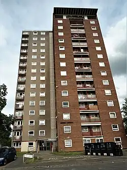 Eden Court is a high-rise residential building belonging to Warwick District Council located in Lillington, Leamington Spa, England. Construction on the 41 m (135 ft), 14 storey, block of flats began in 1959[1] and was completed the following year.[2] The tower was constructed by the former Royal Leamington Spa Borough Council at the same time as a wider development known as The Crest. The area also comprises the eight storey Ashton Court and the seven storey Southorn Court and low rise housing. A public house named the Jack and Jill was opened in 1966 to serve the area,[3] along with a convenience store. The pub was closed in 1996 but the shop remains. The 67 bus route operated by Stagecoach links the area to Cubbington and Leamington town centre.