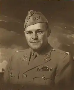 During the War, combat over-age officer personnel with governmental, medical, legal, financial experience were commissioned as Civil Affairs officers. As a result of his experience in the Philippines, Crossman applied to rejoin the Army and was recalled to active duty on June 6, 1944 and commissioned as a Lieutenant Colonel and Civil Affairs Officer on June 28, 1944. He was and attached to General Headquarters Southwest Pacific Area (GHQ SWPA) and United States Army Forces in the Far East (USAFFE). Crossman served in Australia, New Guinea and the Philippines. He participated in the landing in Leyte and helped reestablish civilian government in the Philippines. As Executive Officer and deputy to Brigadier General Courtney Whitney, Chief of the Civil Affairs Section. Crossman frequently dealt personally with General Douglas MacArthur. Crossman's role was complicated as MacArthur's professional staff was jealous of him as he had known the General socially in the Philippines when he worked for Stimson. On July 27, 1945, Crossman was promoted to Colonel and was requested by Stimson, then the United States Secretary of War, to be MacArthur's representative on his personal staff in Washington, D.C. In this capacity, he performed a liaison function and was ordered to help rewrite the Japanese Occupation Directive which incorporated his experience during the Philippine campaign. On October 1, 1945, Crossman was released from active duty and ordered to his home of record at 1088 Park Avenue in New York, New York.[11] He recorded his experiences in a previously unpublished manuscript, My Experiences in WWII.