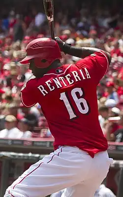 Édgar Enrique Rentería Herazo (Spanish pronunciation: [ˈeðɣaɾ renteˈɾi.a]; born August 7, 1975), nicknamed "the Barranquilla Baby",[1] is a Colombian former professional baseball shortstop. He threw and batted right-handed. He played for the Florida Marlins, St. Louis Cardinals, Boston Red Sox, Atlanta Braves, Detroit Tigers, San Francisco Giants, and Cincinnati Reds.